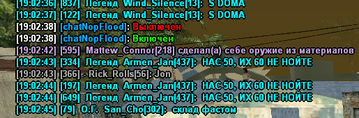 /chatflood - вкл/выкл. По стандарту включен.