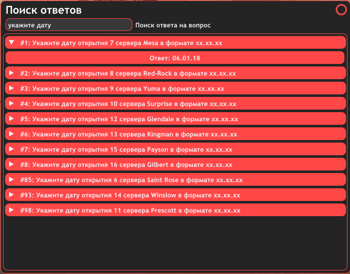 13)Ответы - функция открывает меню с ответами на вопросы, когда Вы открываете диалог с впоросом.