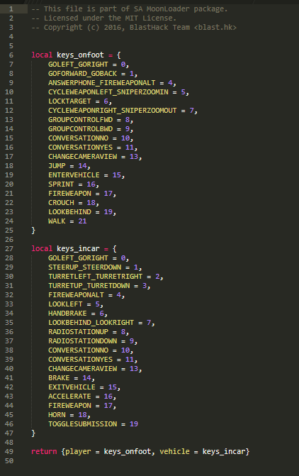 Смотри, открываешь файл moonloader/lib/game/keys.lua и видишь вот такую картину:
