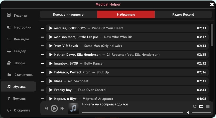 [12:49:22.243699] (script) MedicalHelper: {82E28C}Чтение избранных треков...