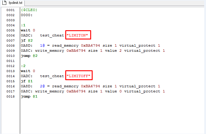CLEO Прочее Включение/Отключение лимита фпс чит-кодом