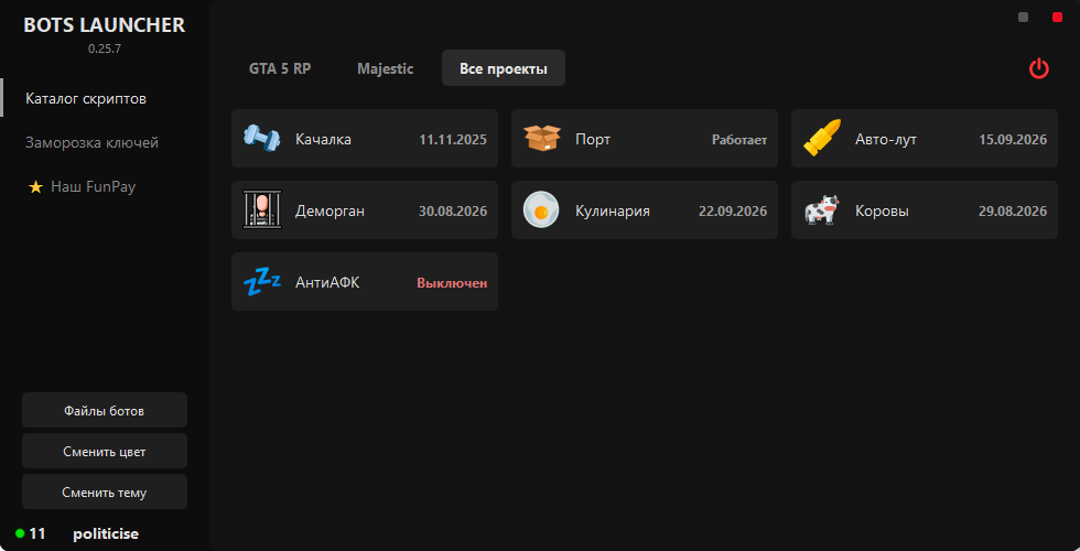 Представляем BOTS LAUNCHER — единый центр для всех ваших потребностей в автоматизации на серверах GTA 5 RP и MAJESTIC!