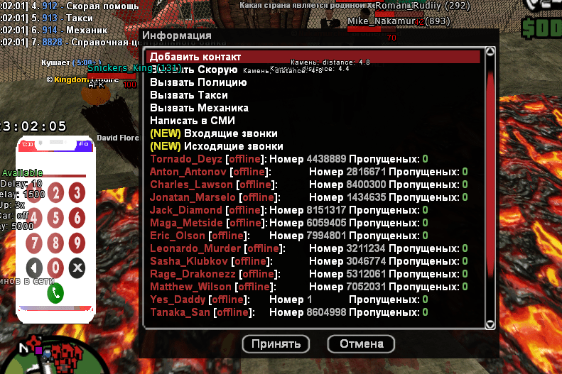 Работает? Тогда удаляем написание сообщения в чат. Теперь давайте не отклоняться от нашей темы. При вводе /call первым делом надо достать телефон, написав команду в чат "/phone". После этого в открывшемся диалоге выбрать первый (или любой другой) телефон.