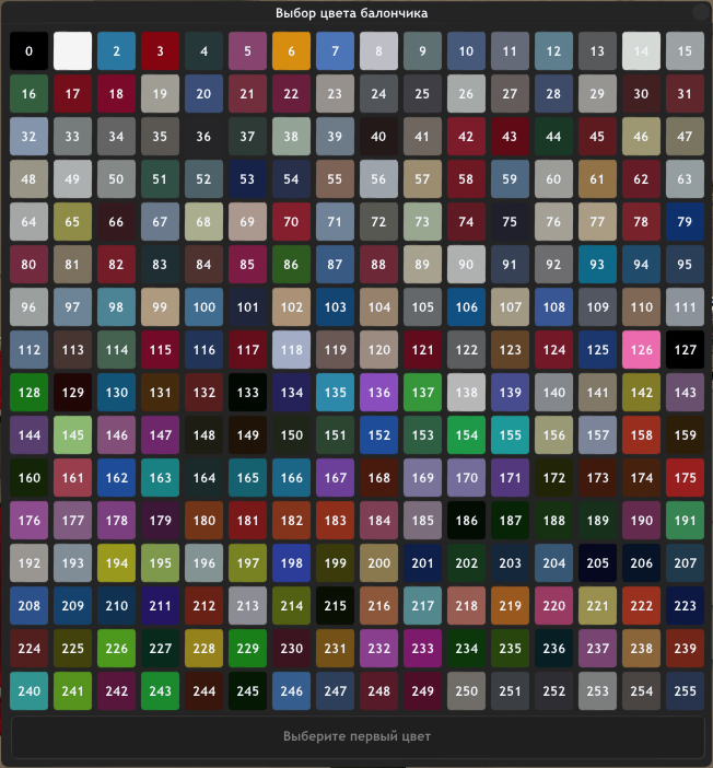 • Обновил окно выбора цвета баллончика (/balon [без аргументов]). Теперь транспорт можно красить визуально, если будете находится в нём;