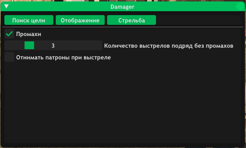 - Промахи: включает промахи после указанного количества выстрелов. Необходимо для обхода анти-аимбота