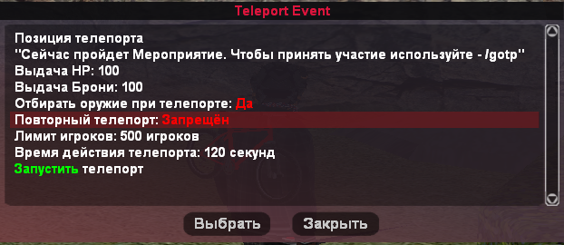 И так же с Отбирать оружие при телепорте: Да (нет)